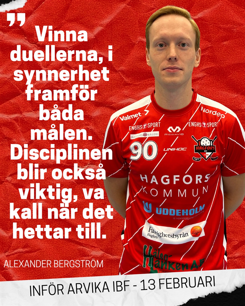 Ikväll spelar A-laget säsongens sista derby när man åker till Arvika för möte med Arvika IBF. Inför matchen har vi fått en pratstund med Alexander Bergström.