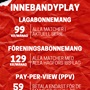 För 99 kr per månad får du se alla matcher i den aktuella serien där det aktuella laget spelar.